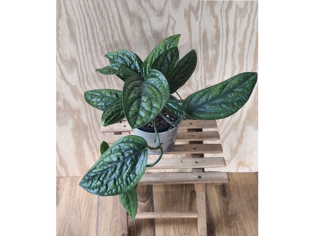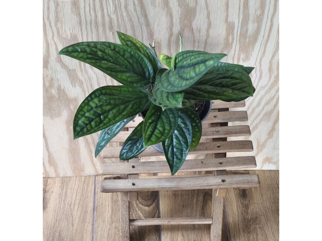 Tmavě zelené listy s výraznou texturou.