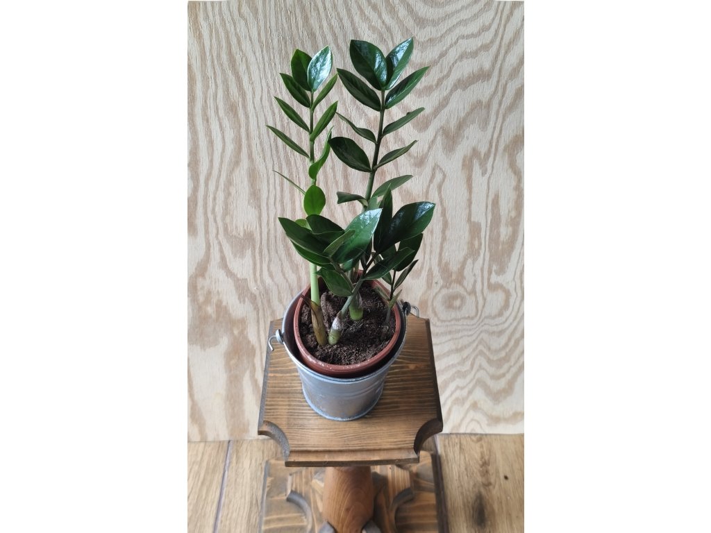 Zamioculcas zamifolia pochází z Východní Afriky, kde roste v podrostu vysokých stromů. Patří mezi ty méně náročné, proto je vhodná pro začátečníky. Má velice dekorativní oválně lesklé listy a dorůstá do výšky až 1 metru. Vyrůstá z hlízy, která je v substrátu.